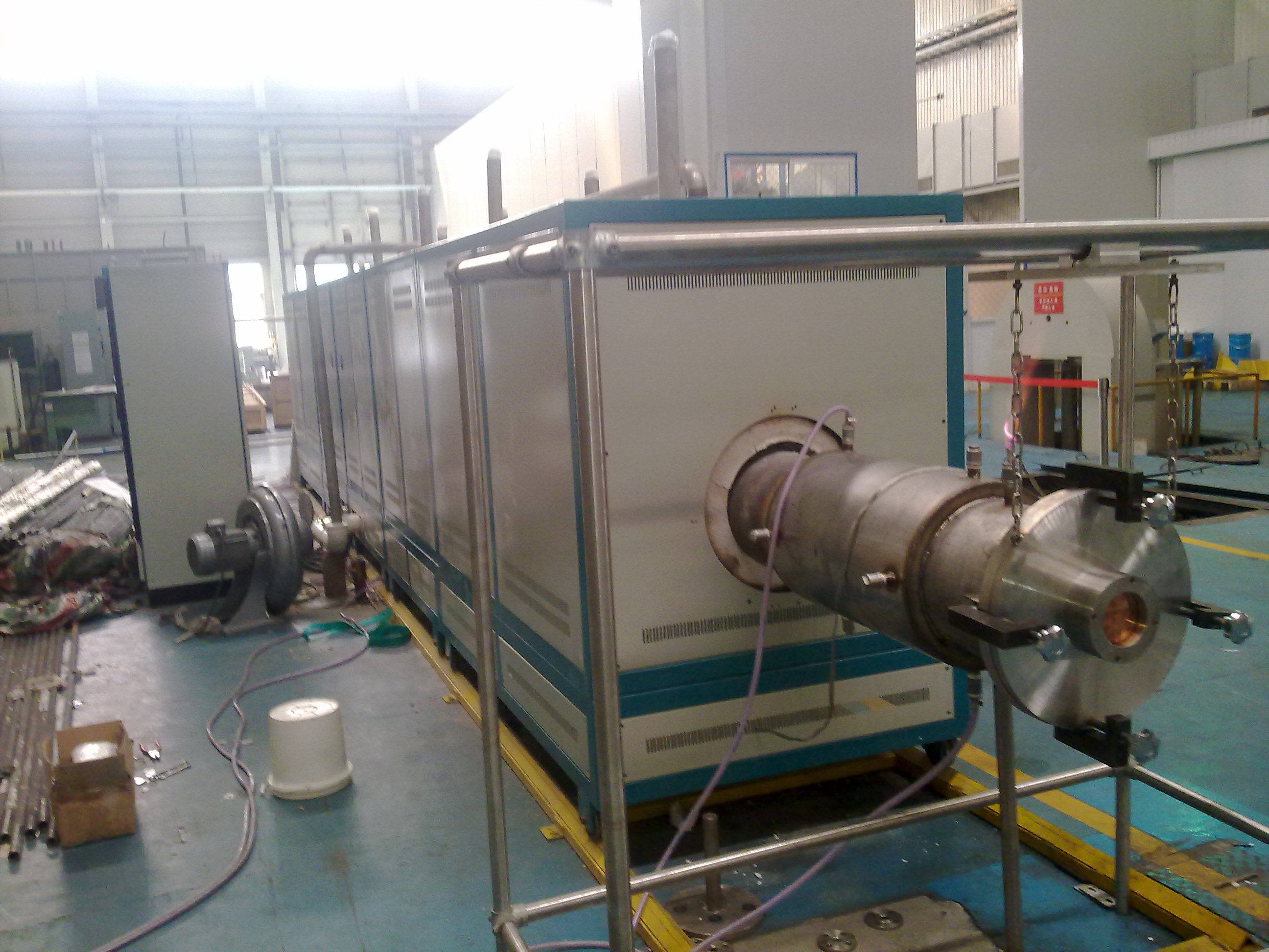 1、電爐最高使用溫度:1300度;發(fā)熱元件:U型硅碳棒(型號:20-400-250-50);控制精度±1度;熱電偶分度號:S;電爐帶8通道數(shù)顯無紙記錄儀;電爐有軌道,可移動;加熱區(qū)長7500mm,爐溫均勻區(qū)長6500mm,均勻區(qū)溫度均勻性±8攝氏度;功率180KW;電壓380V;